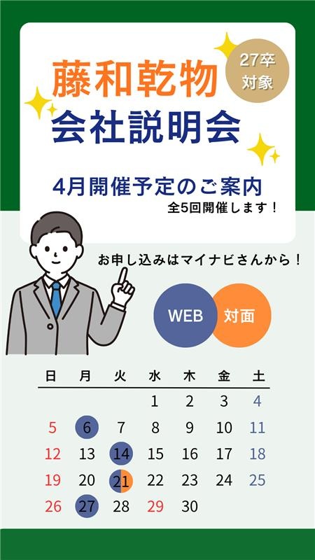 27卒向け会社説明会、4月開催分のスケジュールが発表となりました。